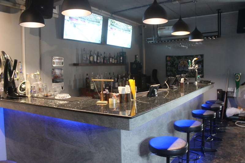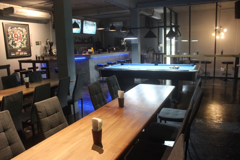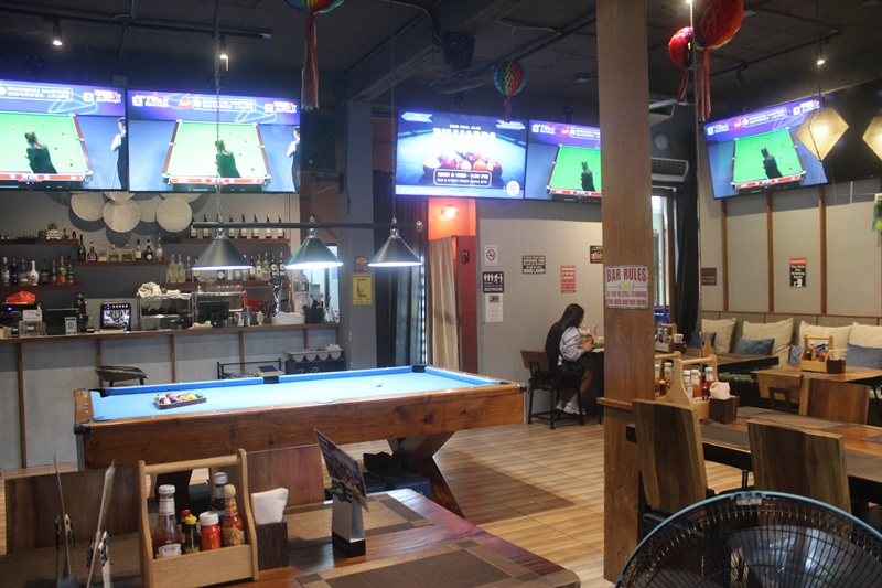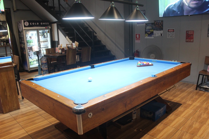1階はオープンテラスと室内席、2階にはバーカウンターもあります。スポーツバーとして外画面のTVモニターがズラッと並ぶ他、ビリヤード台が1,2階両方にあります。飲むにも、食べるにも、遊ぶにも良いのです!