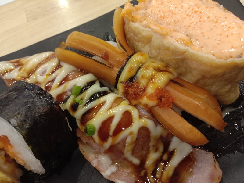この右から二番目のネタ、何だかお分かりでしょうか?そう、あの懐かしいタコサさんウインナーです!まさか寿司ネタとして再会しようとは夢にも思いませんでした。