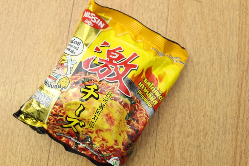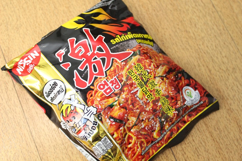 タイの日清で売り上げナンバー1の人気商品です。タイでも韓流のポップスやドラマが流行っている影響でしょうか、韓国製のインスタントラーメンが輸入されてコンビニの棚に並んでいますが価格は45バーツとお高め。しかし、この製品はその4分の1以下!日本円でも約40円とお得なんです。