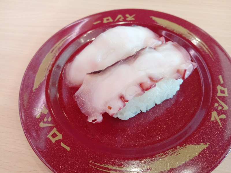 次は淡泊なネタをと「たこ(40バーツ)」。新鮮なので弾力バッチリ。