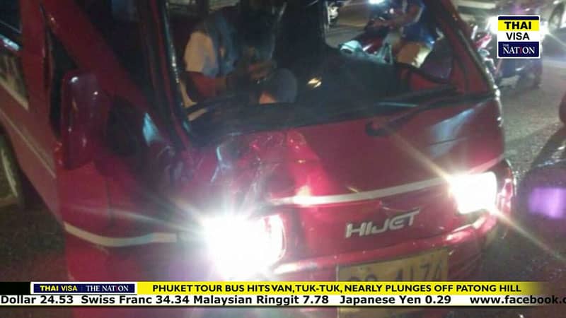 8月6日(日)夜8時28分、プーケット島のパトン地区の山道で、中国人観光客25人を乗せた大型ツアーバスが、スピードの出し過ぎで、日本人旅行客3人が乗ったシーロー(小型トラックの荷台に座席をつけたタクシー)とミニバンに衝突後、ガードレールを突き破って大破する事故が発生しています。